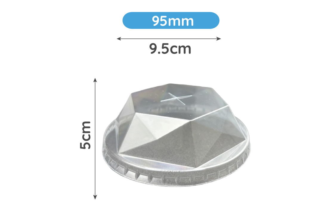 95mm Clear Plastic Recyclable Diamond Dome Lid with Straw Cut